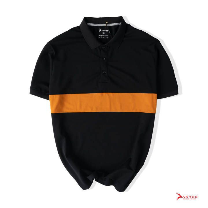 Áo Polo Nam Màu Đen Phối Họa Tiết Vàng Bigsize 80-140kg AKYOO