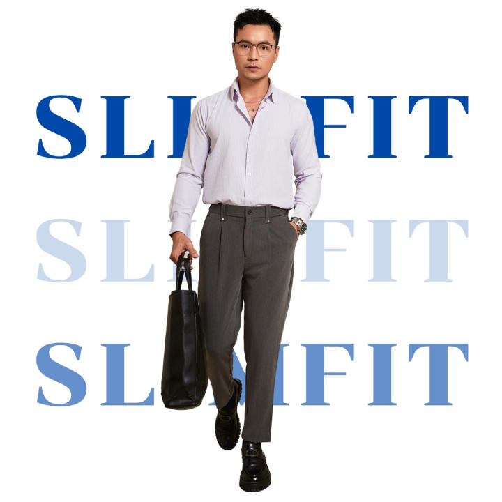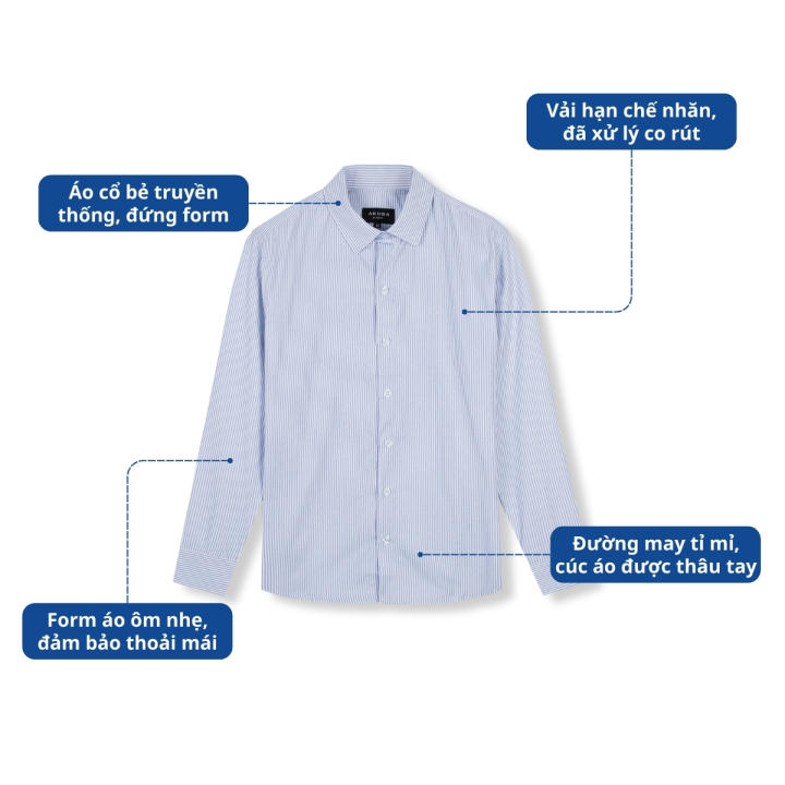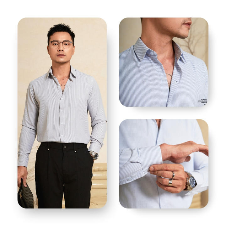 Áo sơ mi nam AKUBA tay dài, form slimfit vừa người, vải lụa chống nhăn, thoáng mát | 01TE1033