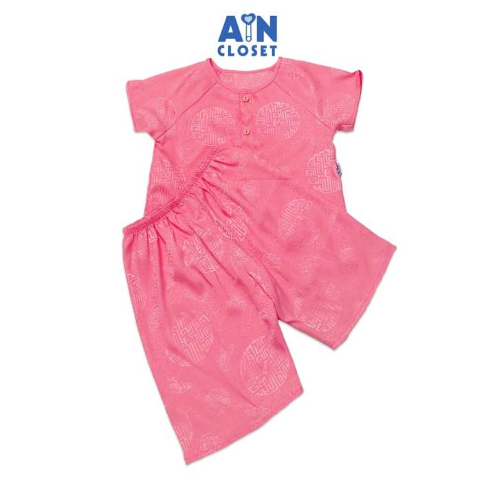 Bộ quần áo bà ba lửng bé gái hoa văn Cổ Trang gấm hồng – AICDBGOZYKTV – AIN Closet