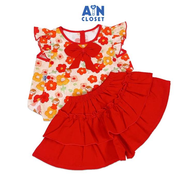 Bộ quần áo Ngắn bé gái họa tiết Bé Nơ Đỏ Cotton – AICDBGOIVGHW – AIN Closet