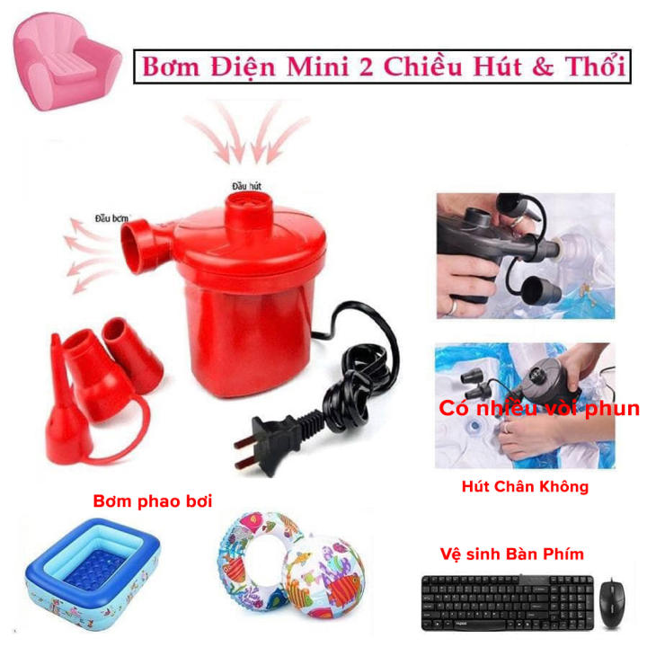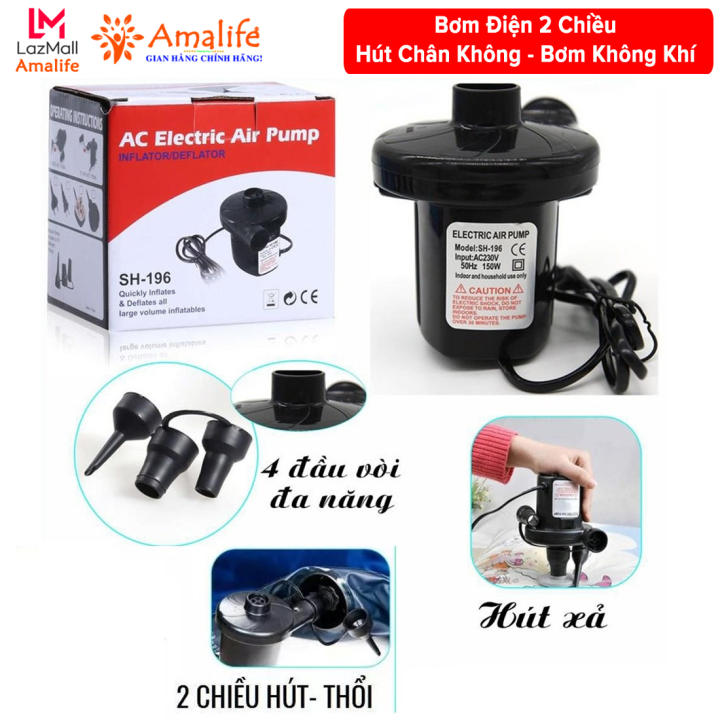 Amalife TRung Quốc. Bơm điện 2 chiều hút chân không dùng để bơm bể phao, bơm phao, nệm hơi, nhà hơi và tất cả các sản phẩm bơm hơi thông thường khác, hút túi hút chân không đựng chăn, màn, quần áo. Bơm hút chân không mini 2 chiều tạo ra luồng gió mạnh sẽ làm sạch đươc bàn phím máy tính của bạn…