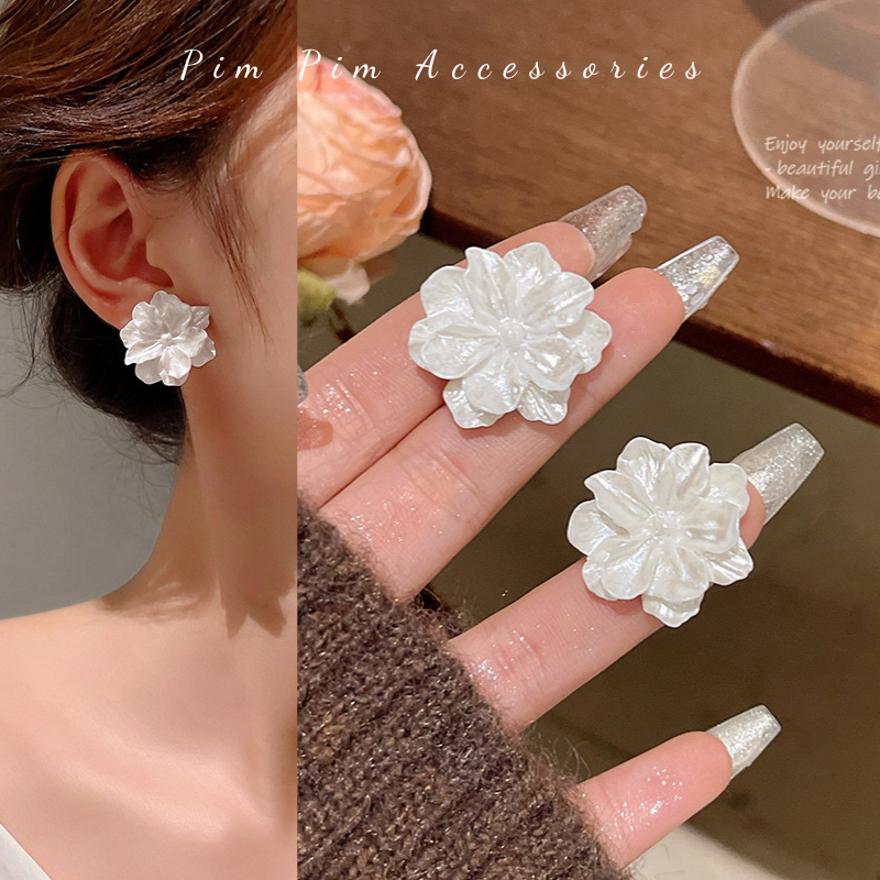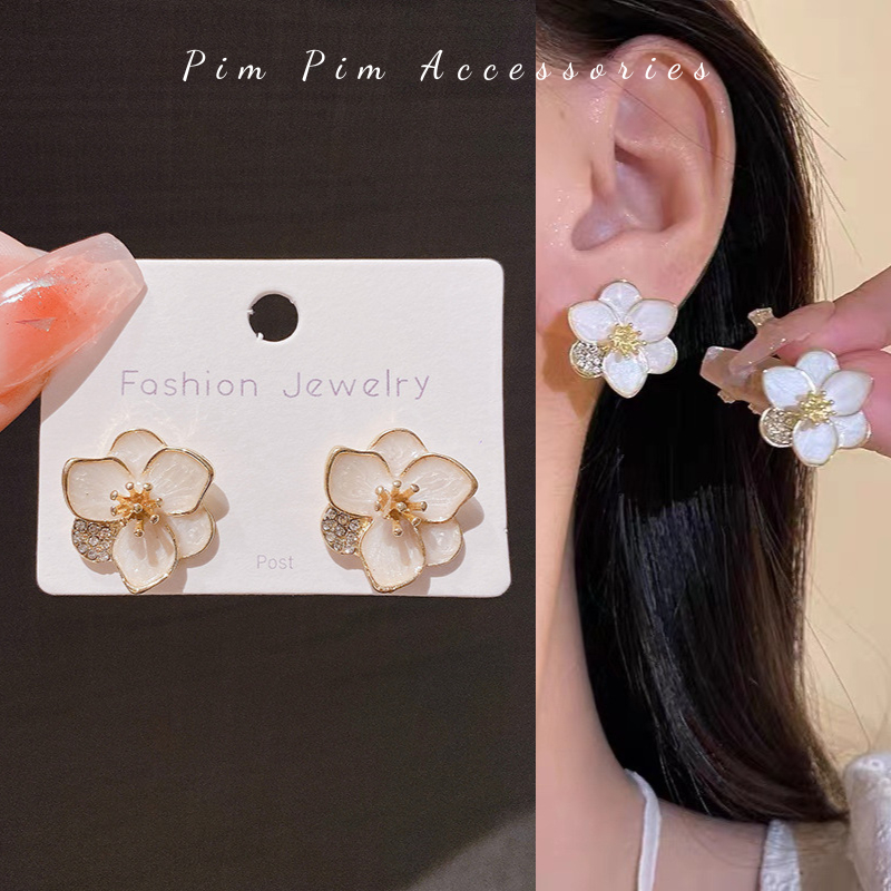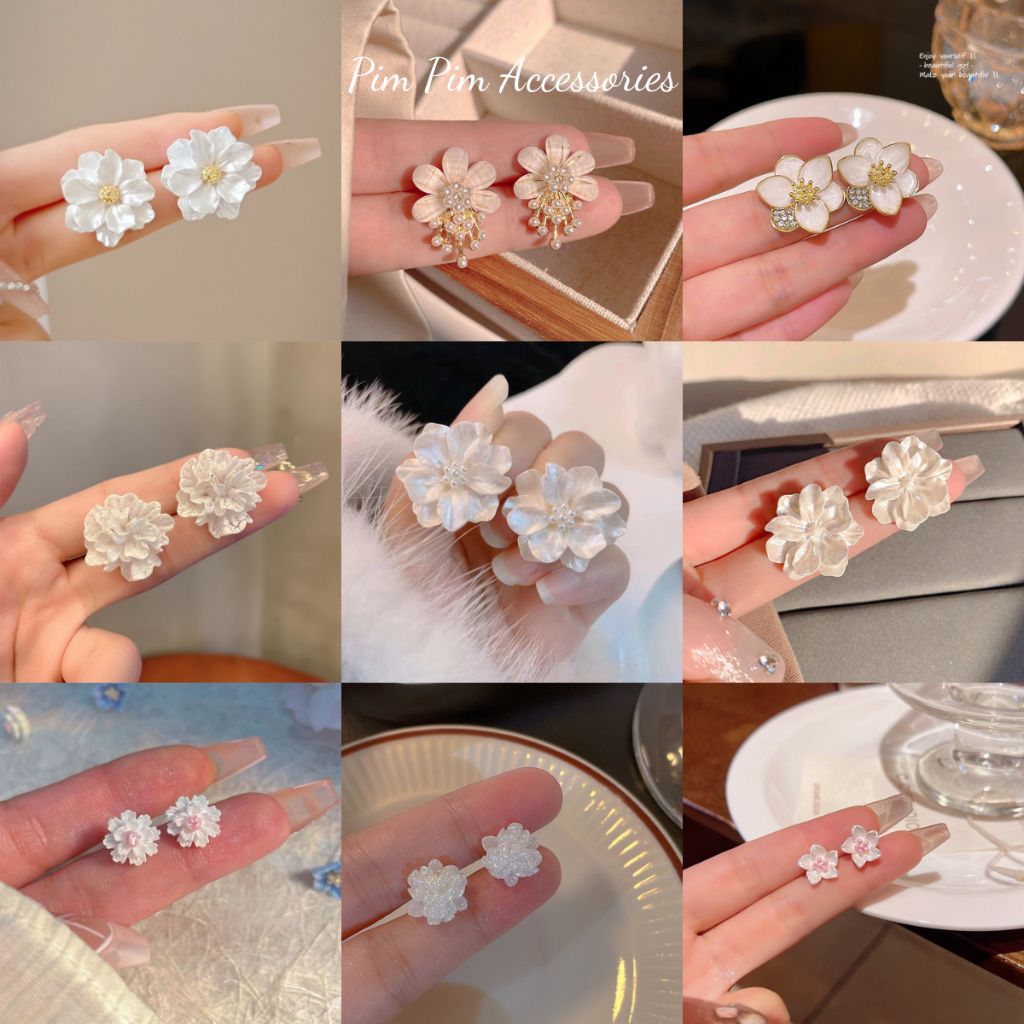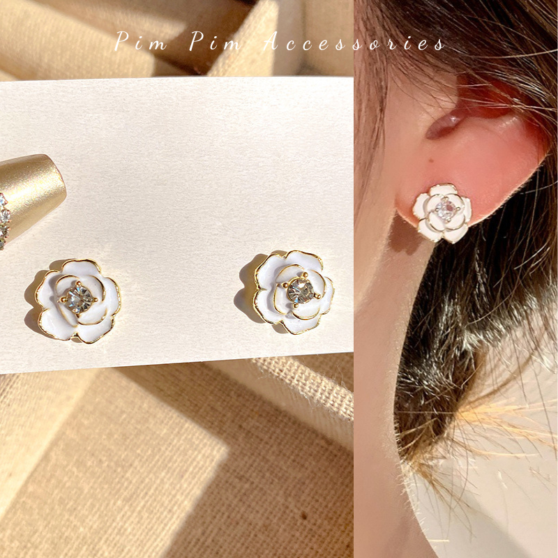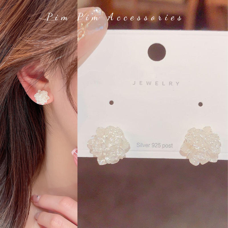 Specification: Bông Tai Nữ Kiểu Hoa Trà Thanh Lịch Chuôi Bạc S925 Khuyên Tai Gài Phong Cách