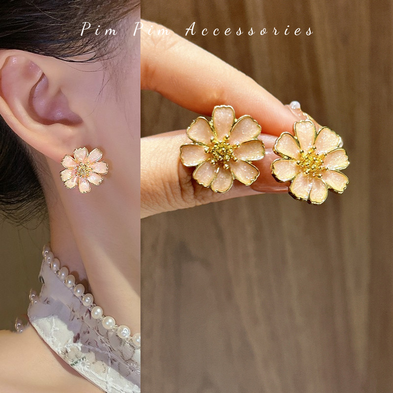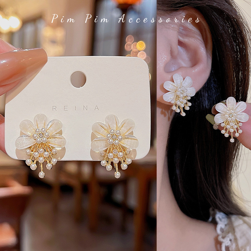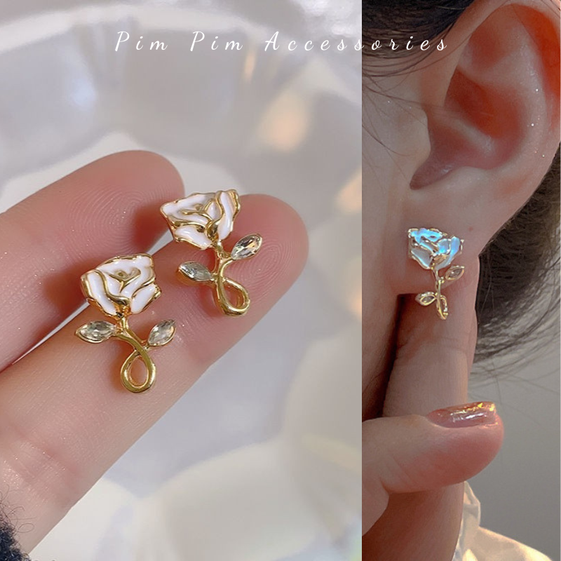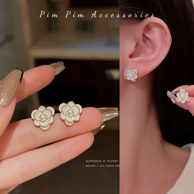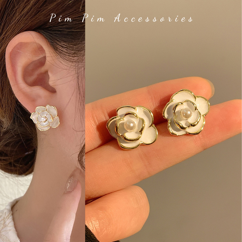 Specification: Bông Tai Nữ Kiểu Hoa Trà Thanh Lịch Chuôi Bạc S925 Khuyên Tai Gài Phong Cách