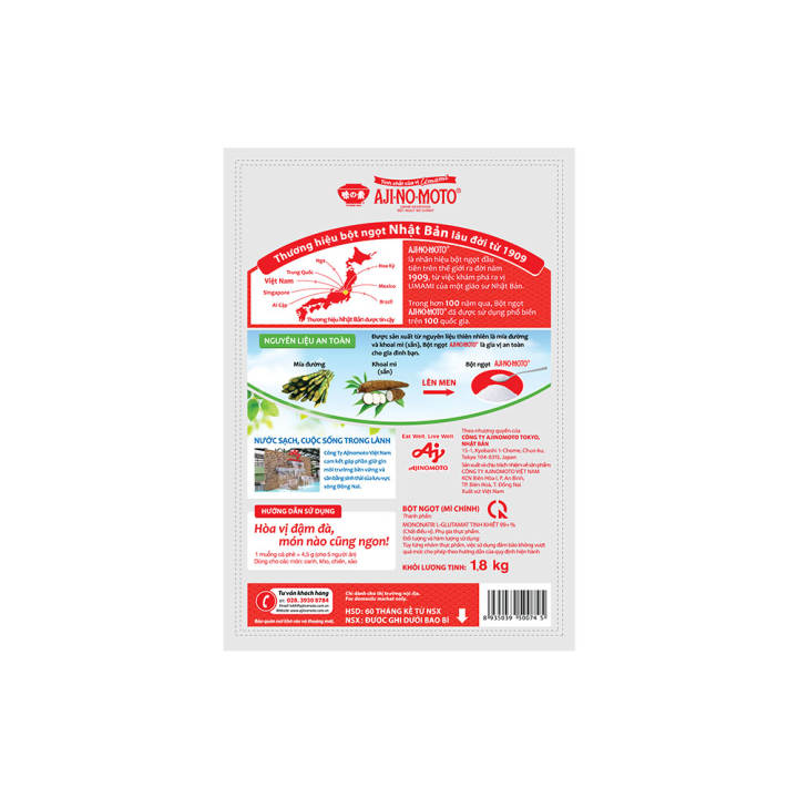 Bột ngọt AJI-NO-MOTO® gói 1,8kg sử dụng nguyên liệu từ thiên nhiên. Được kiểm tra kĩ lưỡng để đảm bảo chất lượng. Sản phẩm được sản xuất bằng phương pháp lên men tự nhiên. Bột ngọt AJI-NO-MOTO® Hạt lớn 1.8Kg. Bột ngọt AJI-NO-MOTO® Hạt lớn 1.8Kg đã ra đời cách đây hơn 100 năm xuất phát từ mong…