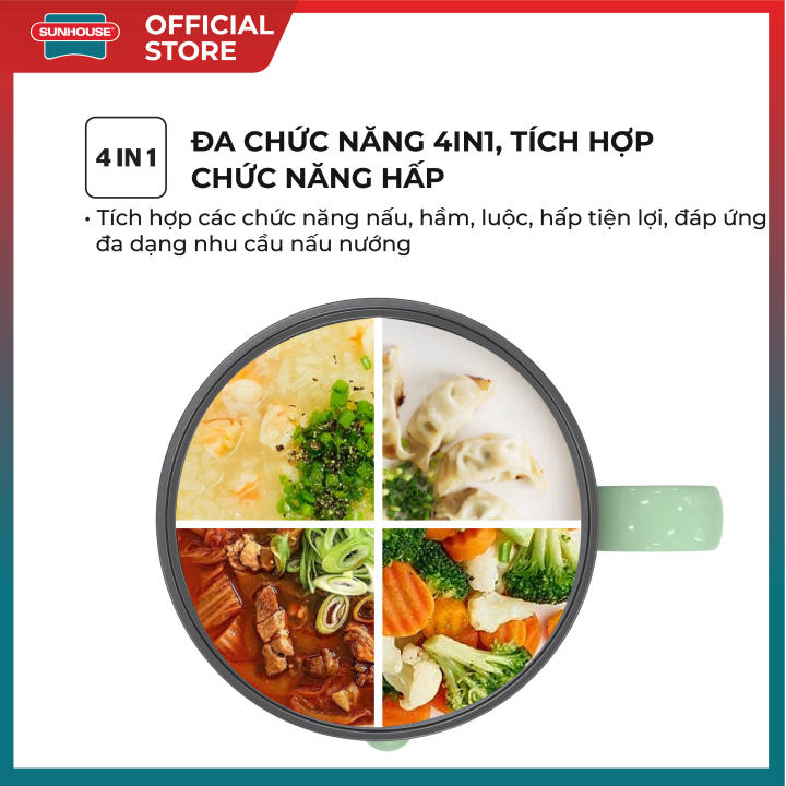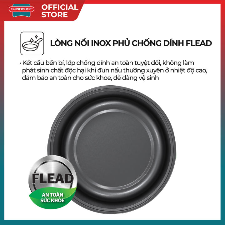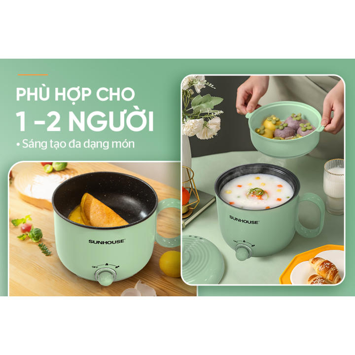 Ca lẩu điện mini 1.5L Sunhouse SHD4515G – Phù hợp cho 1-2 người – Chống dính Flead an toàn bền bỉ – Chín nhanh tức thì – Bảo hành Chính hãng 12 tháng