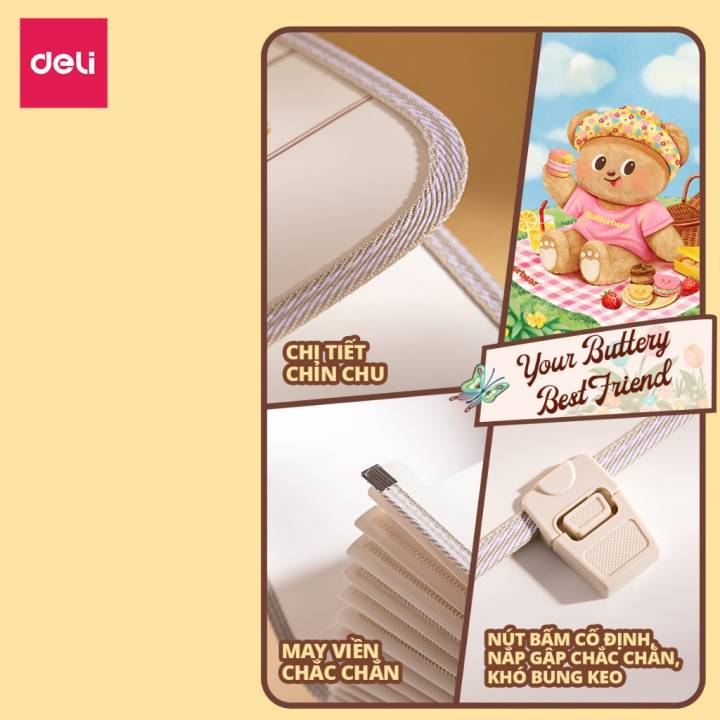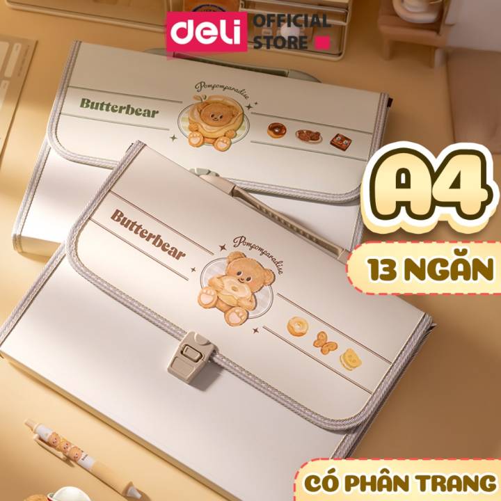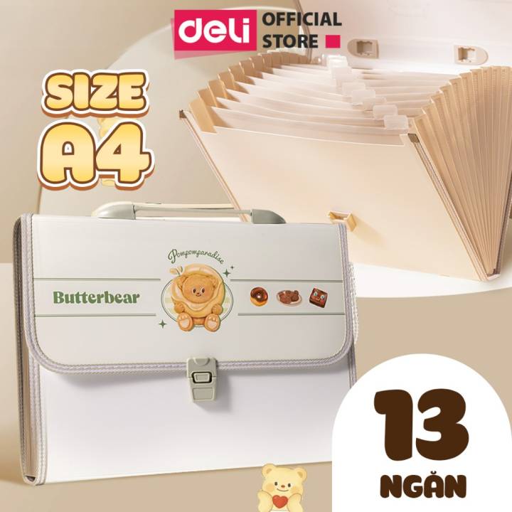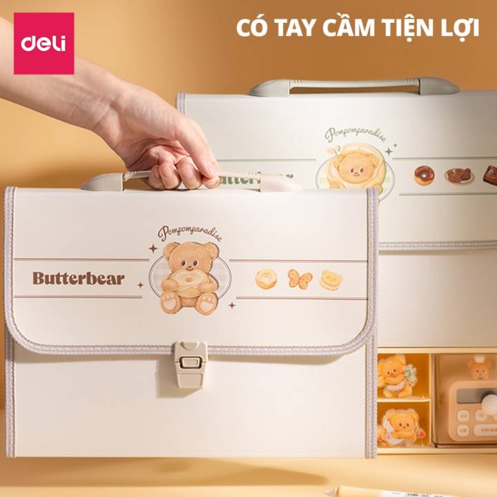 Cặp Học Thêm Butterbear x Deli Cặp Sách 13 Ngăn Khổ A4 Dễ Thương Gấu Bơ Túi Học Thêm Tiện Dụng Cho Học Sinh