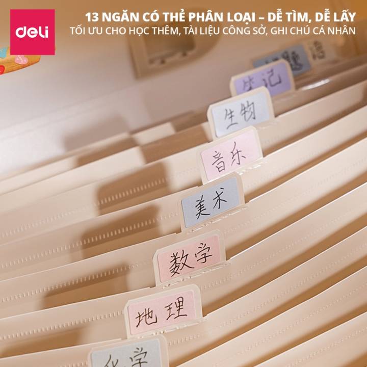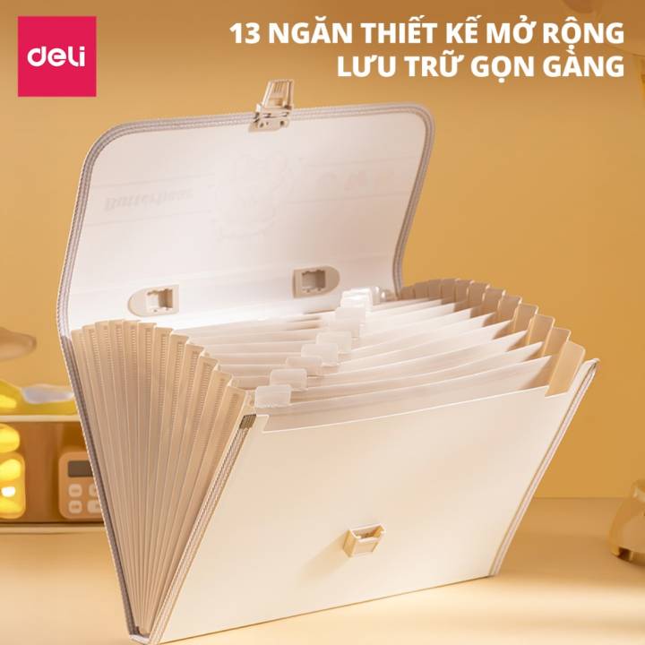Cặp Học Thêm Butterbear x Deli, Cặp Sách 13 Ngăn Khổ A4 Dễ Thương Gấu Bơ, Túi Học Thêm Tiện Dụng Cho Học Sinh
