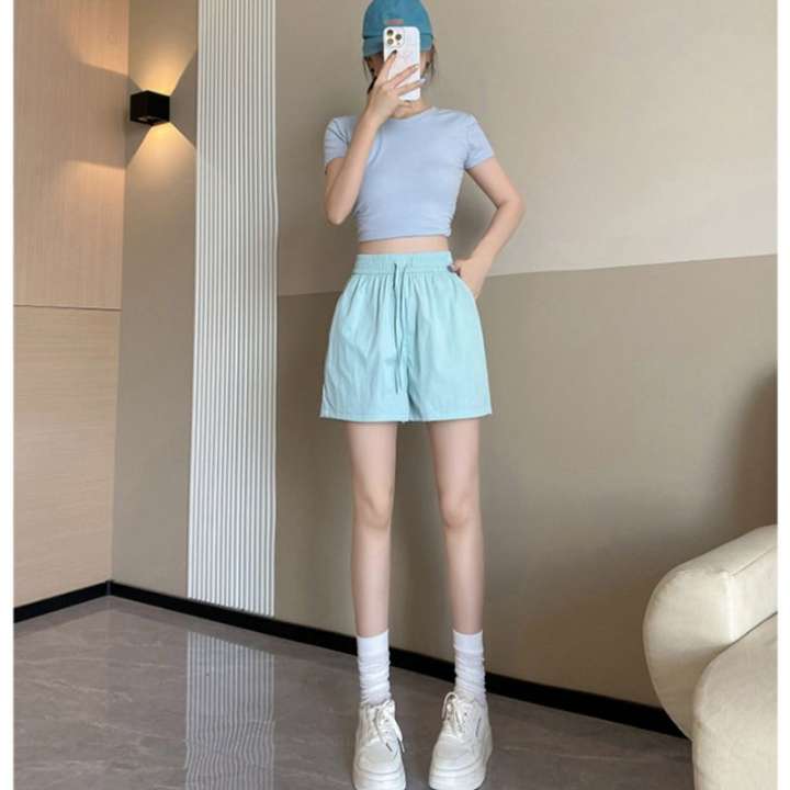 Cho ăn Lụa băng nữ quần soóc thể thao đơn giản lỏng nhanh khô