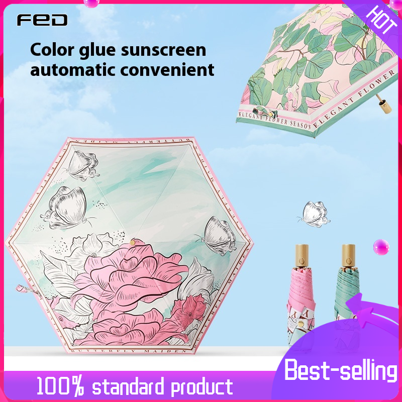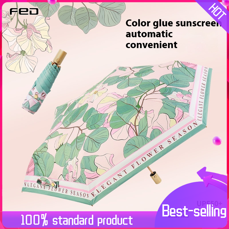 Cho ăn Ô chống nắng gấp tự động thanh lịch với thiết kế bảo vệ khỏi tia UV và hoa
