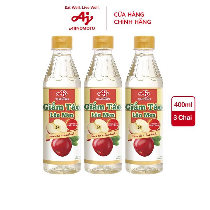 Combo 3 chai giấm táo lên men 400ml Ajinomoto organic – giấm táo lên men tự nhiên Nhật Bản an toàn sức khỏe. Hương vị thơm ngon, thanh chua, giúp món ăn thấm đượm vị ngon, phù hợp chế biến nhiều món ăn hàng ngày. – Lazada