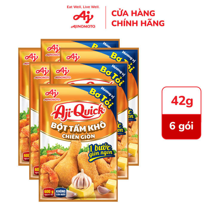 Combo 6 Gói Aji-Quick® Bột Tẩm Khô Chiên Giòn hương vị Bơ tỏi 42g/Gói