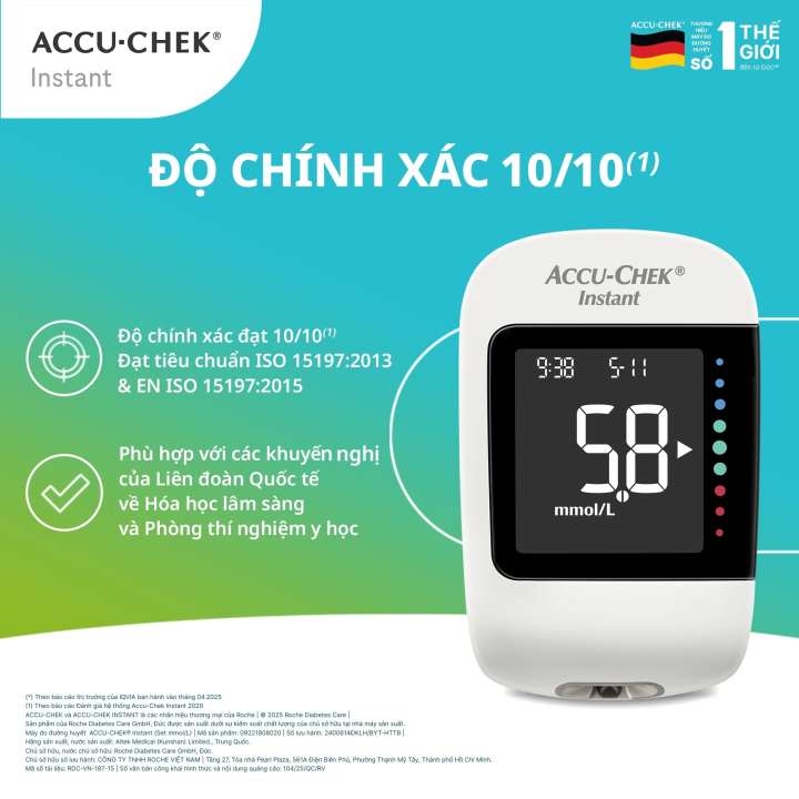 [Combo Đơn Giản] Máy Đo Đường Huyết ACCU-CHEK® Instant Kèm Hộp 25 Que Thử & 25 Kim Lấy Máu SoftClix