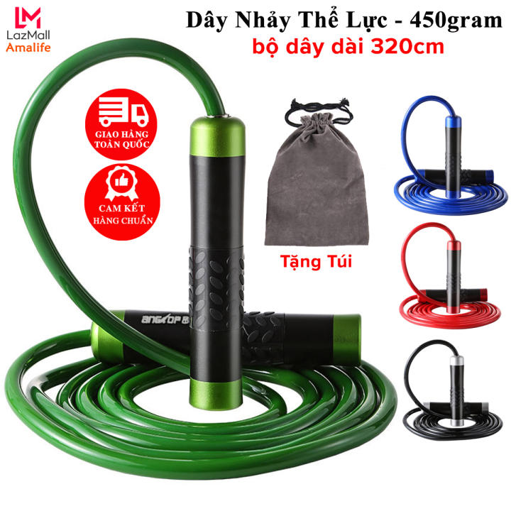 Dây Nhảy Thể Lực Nặng 450g Cho Người Luyện Võ Thuật, Boxing, Muay Thái (Tặng Túi) AngTop1 Chọn Màu Chính Hãng Amalife