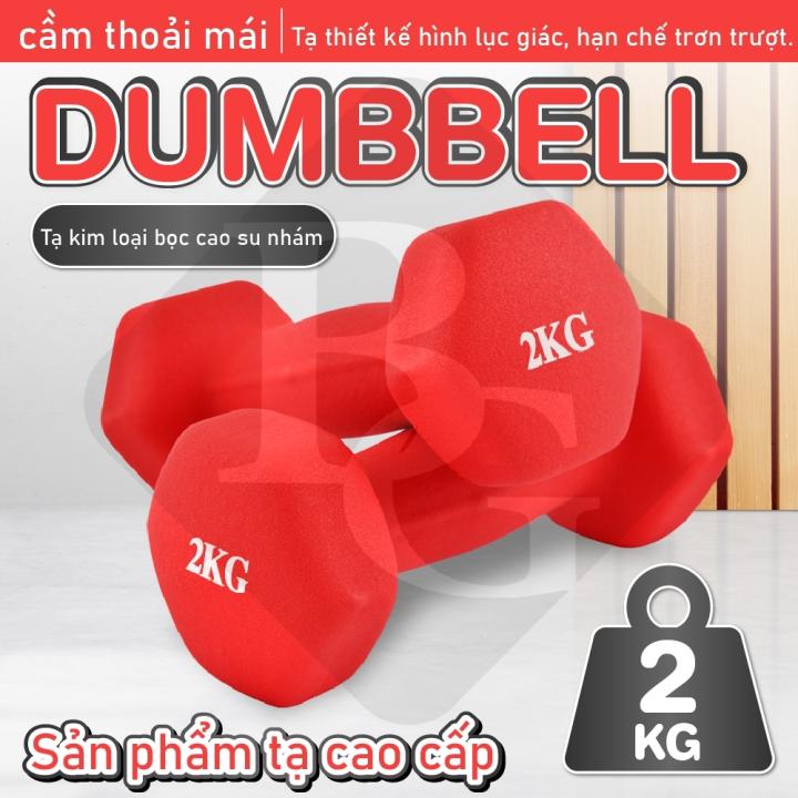 (ĐỦ MÀU ) BG -Một cặp tạ tay 2KG cao cấp thép đặc bọc cao su nhám thái lan tập Gym (Tổng 4 kg)