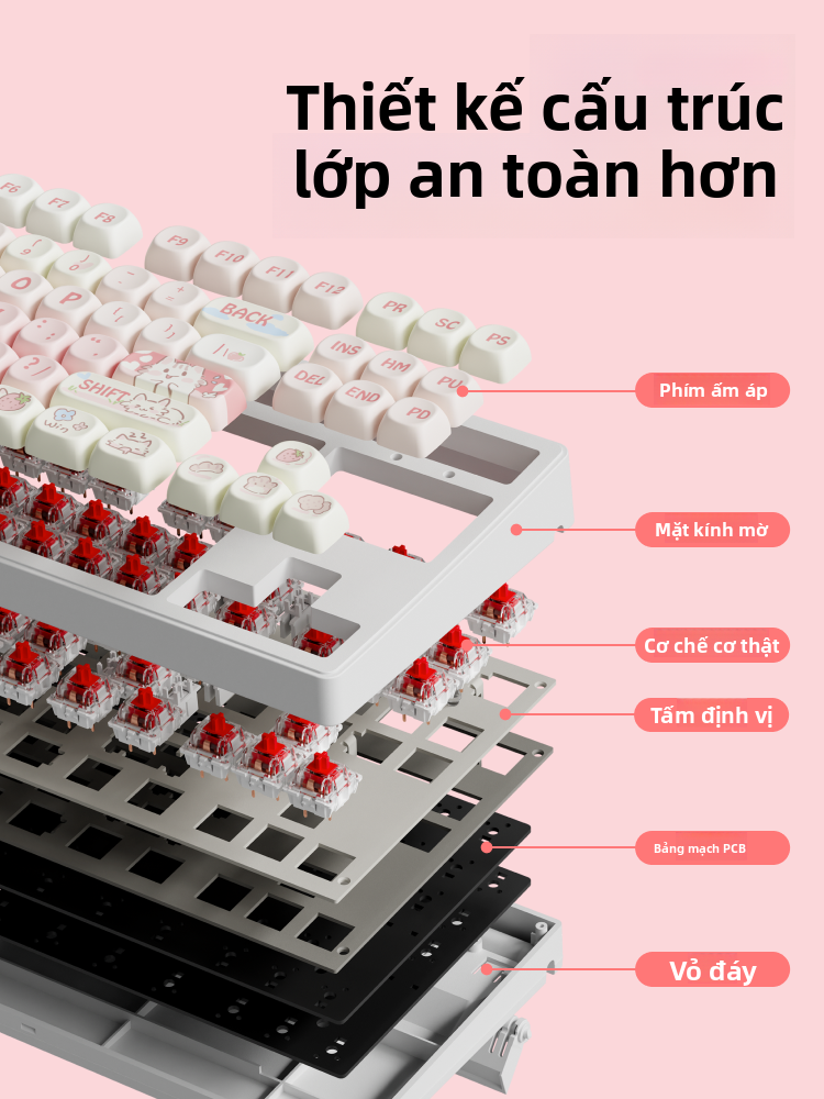 Bàn phím cơ không dây EWEADN với thiết kế hình mèo Dâu Tây dễ thương, phù hợp cho nữ giới. Chia sẻ 3 chế độ kết nối Bluetooth, hỗ trợ nhiều thiết bị, kèm chuột im lặng, mang lại trải nghiệm sử dụng thoải mái và tiện lợi. – Lazada