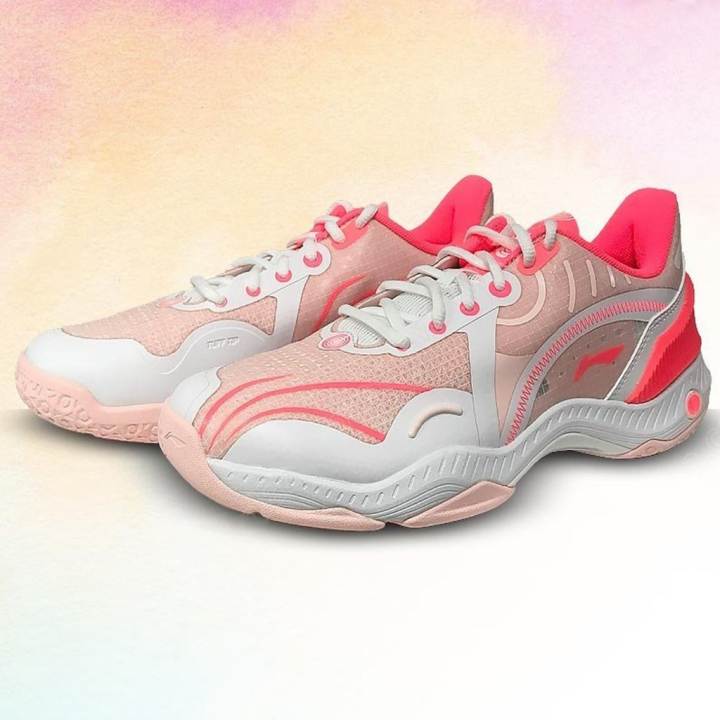 Giày cầu lông thể thao nữ Li-Ning AYZT009-2, chất liệu tổng hợp bền bỉ, màu trắng hồng nữ tính. Thiết kế phù hợp cho người lớn, mang lại sự thoải mái và hỗ trợ tối ưu khi chơi cầu lông. – Lazada