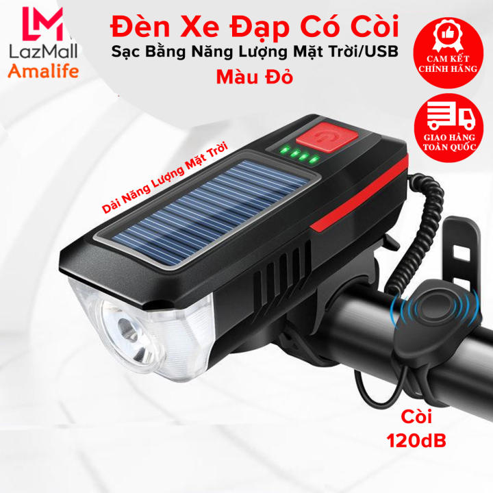 Đèn xe đạp năng lượng mặt trời Amalife với 5 chế độ sáng, chống nước và sạc USB, phù hợp cho leo núi. Thiết kế chống va đập, thời gian sử dụng lâu dài, giúp an toàn khi đi xe đạp ngoài trời. – Lazada