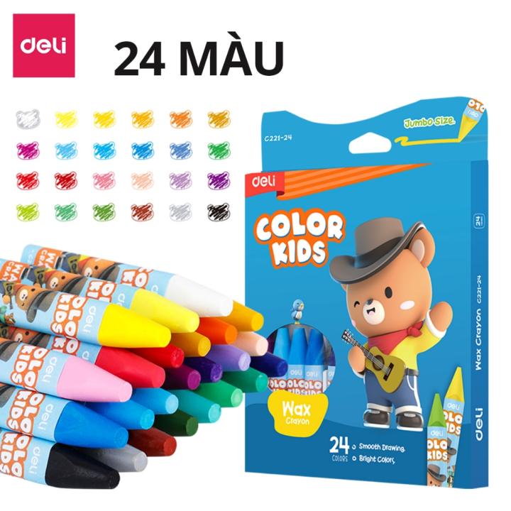 Màu sáp dầu học sinh Colorkids 12/24 màu Deli-Sáp màu dầu siêu mịn màu sắc tươi sáng an toàn ít mùi tô màu mỹ thuật