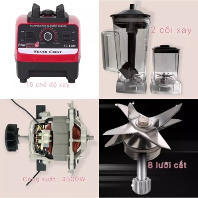 Máy Xay Sinh Tố Đa Năng KAW Silver Crest SC-1589 – Công Suất 4500W, 2 Cối, Xay Mạnh & Ổn Định
