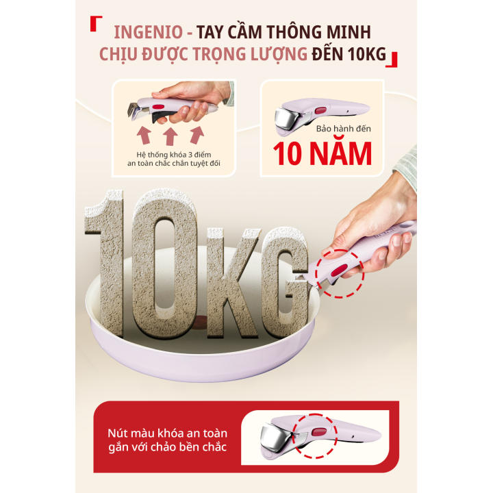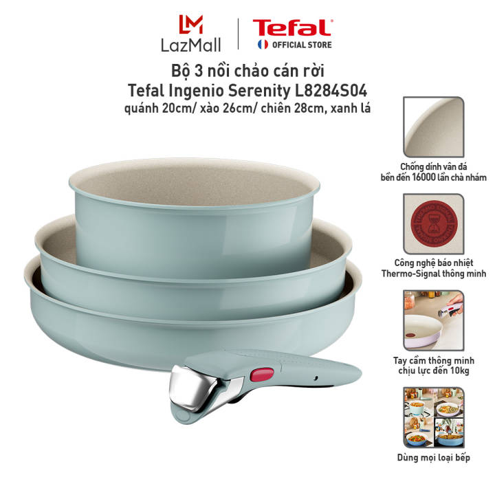 [MỚI] Bộ 3 nồi chảo cán rời Tefal Ingenio Serenity L8284S04, quánh 20cm/ xào 26cm/ chiên 28cm, xanh mint pastel (xanh lá nhạt)