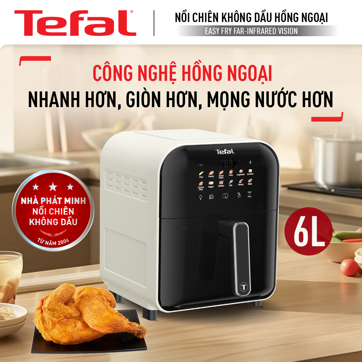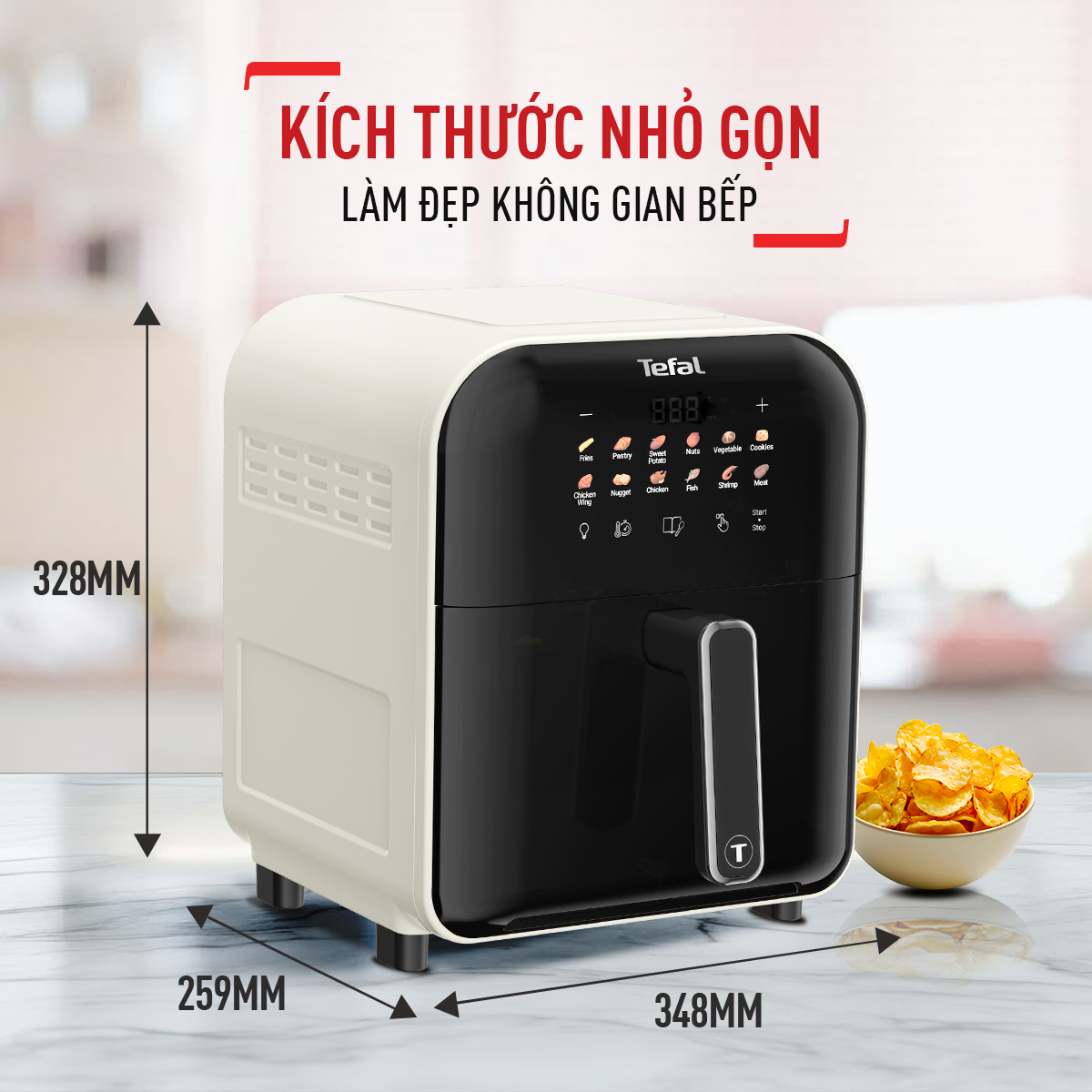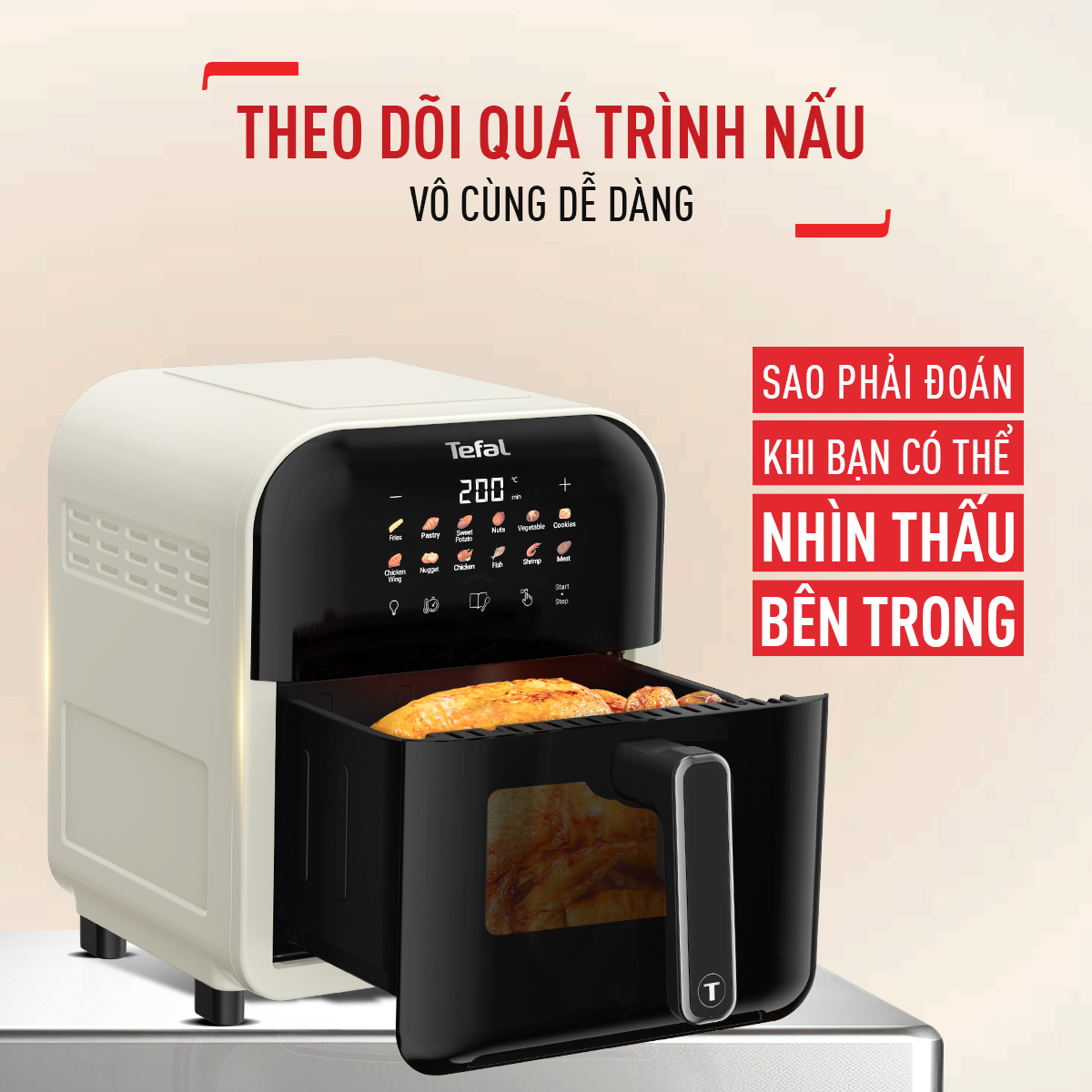 MỚI Nồi chiên không dầu Tefal Window white EY8211Y0-6L-Điện tử