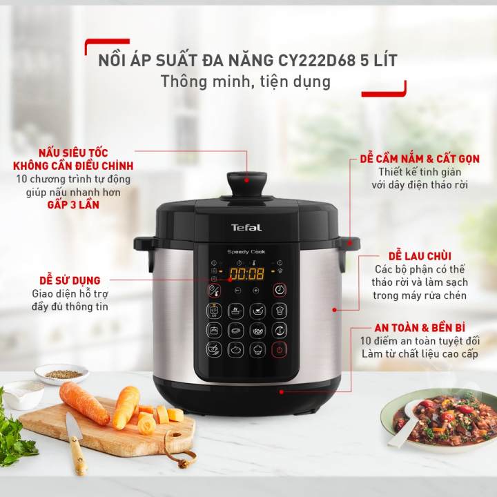 Nồi áp suất điện đa năng Tefal Speedy Cook 5L CY222D68