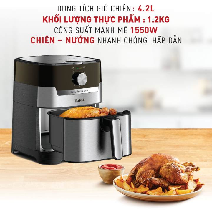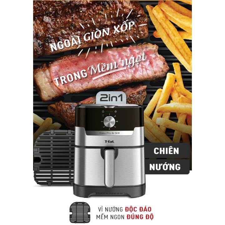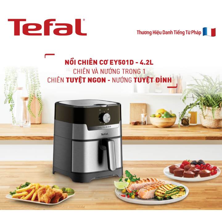 Nồi chiên không dầu Tefal 2in1 EY501D15-4.6L-Inox-Cơ