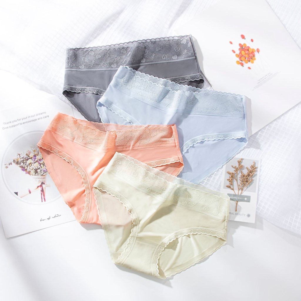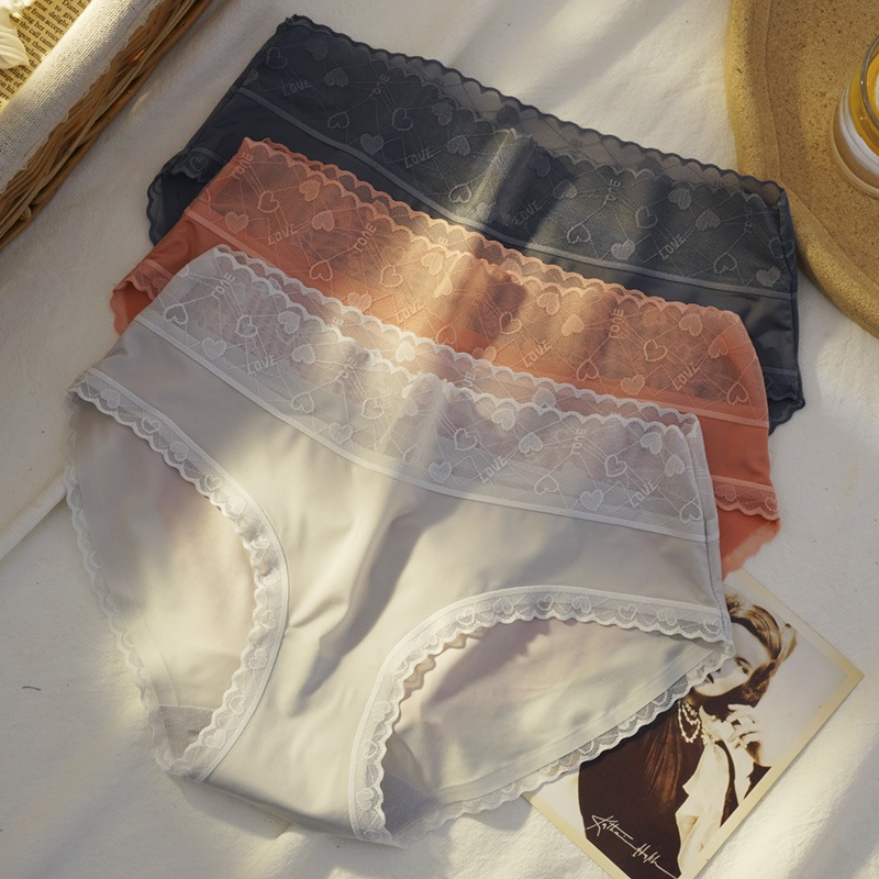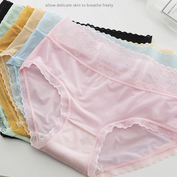 Quần Lót Nữ Su Lụa Băng Siêu Mỏng Mát Phối Cạp Ren Tim 3 Size M/L/XL Mẫu Ladi-9099