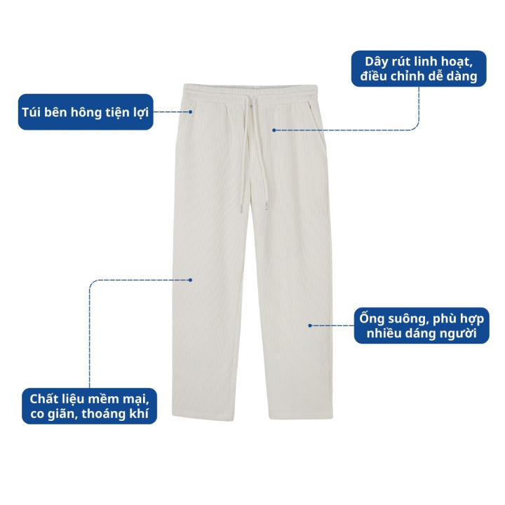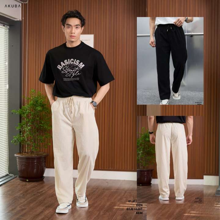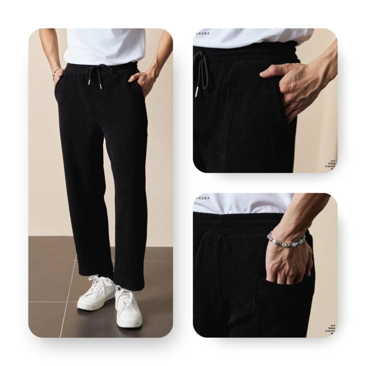 Quần thun nhung tăm AKUBA Menswear dáng suống dài năng động, Pant thoải mái, dày dặn tôn dáng | 01JE1029