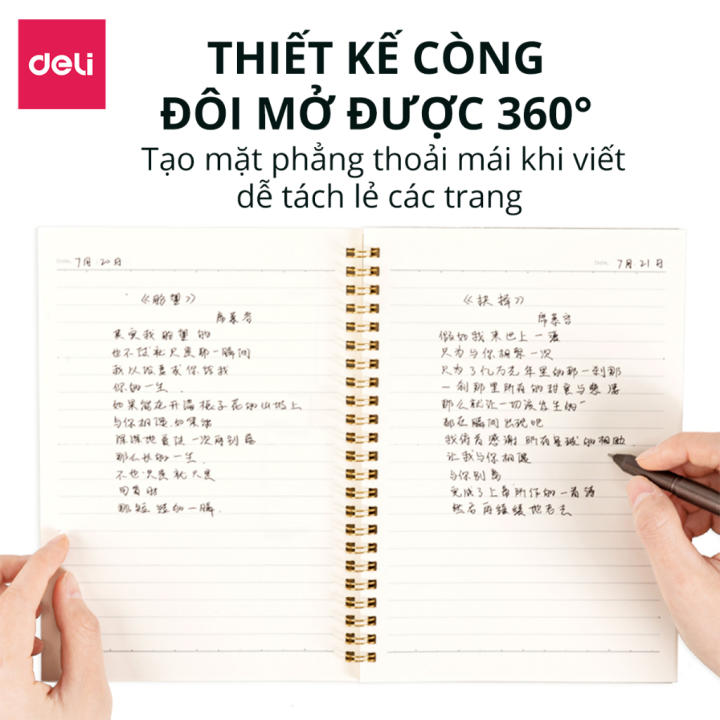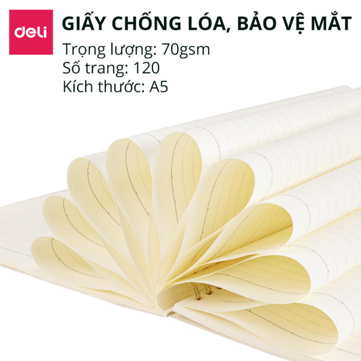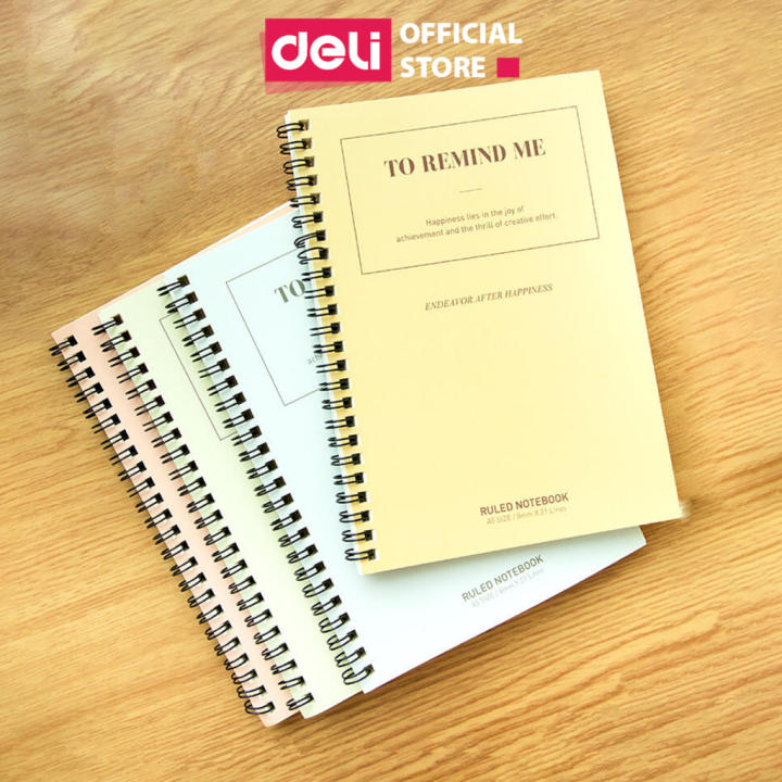 Sổ tay ghi chép A5 gáy xoắn 120 trang Deli – Kẻ ngang – Màu ngẫu nhiên – Phù hợp với học sinh, dân văn phòng