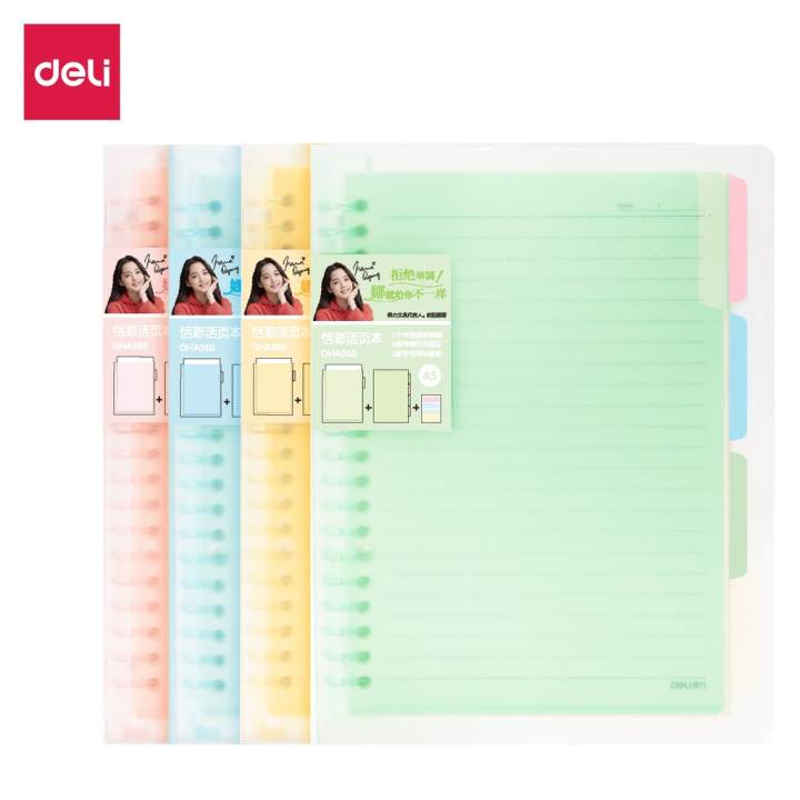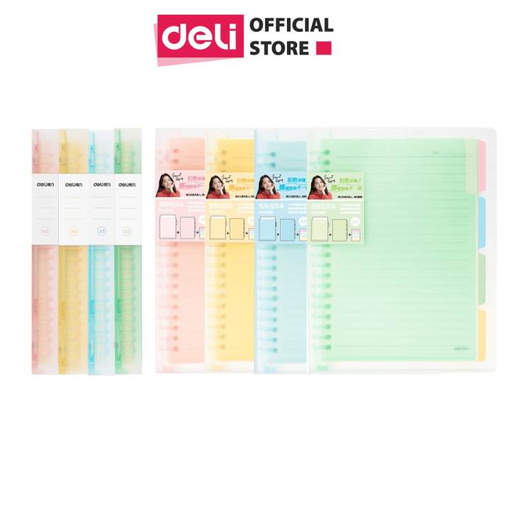 Sổ tay ghi chép học sinh DELI A5/B5, Sổ còng gáy xoắn lò xo cao cấp 120 trang – giấy chống lóa, chống mỏi mắt – QHB560/QHA560