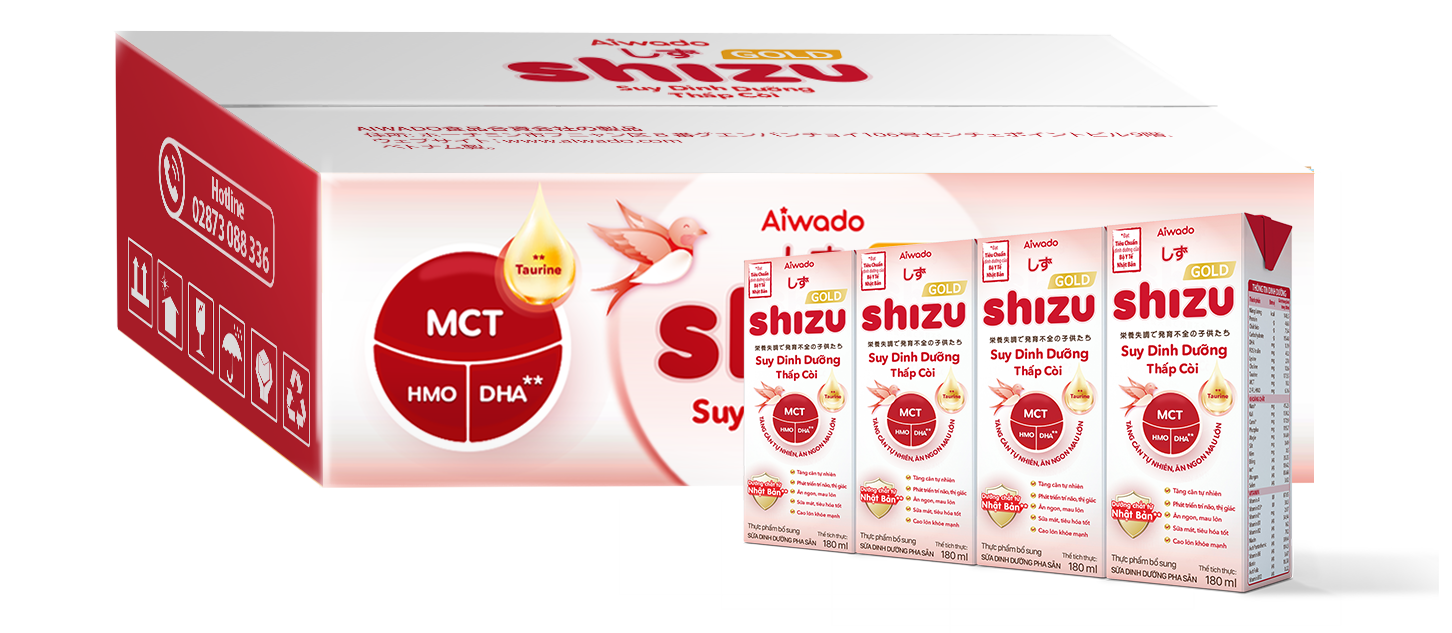 Sữa Bột Pha Sẵn Aiwado Shizu Gold – Suy Dinh Dưỡng Thấp Còi thùng 48 hộp 180ml (trên 6 tháng) – Tinh tuý dưỡng chất Nhật Bản