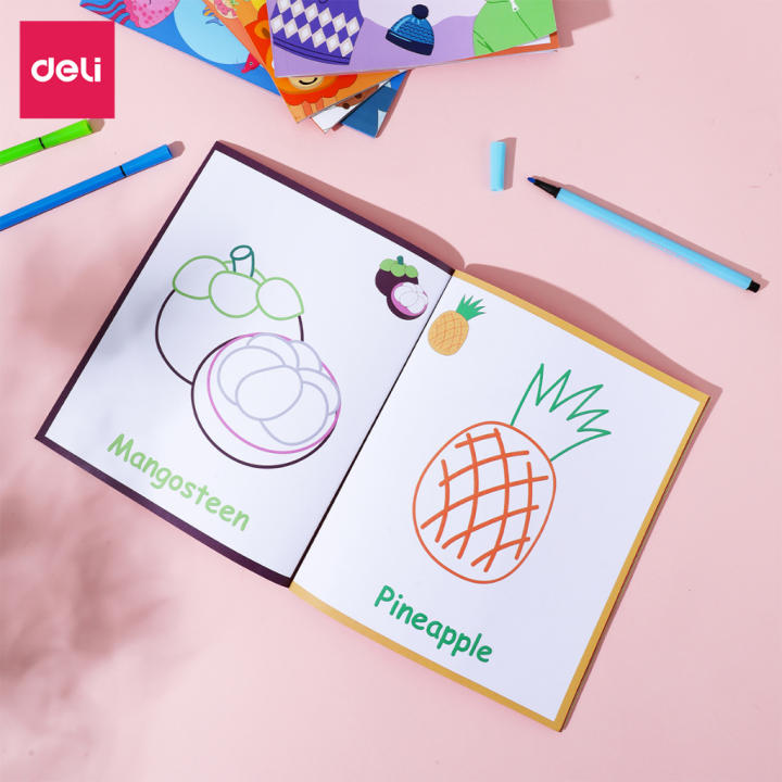 Tập tô màu sáng tạo Deli giúp bé học từ vựng tiếng Anh qua 24 trang tranh vẽ đa dạng. Chủ đề phong phú từ hoa quả, động vật đến biển cả, kích thích sự sáng tạo và phát triển kỹ năng tô màu cho trẻ em. – Lazada