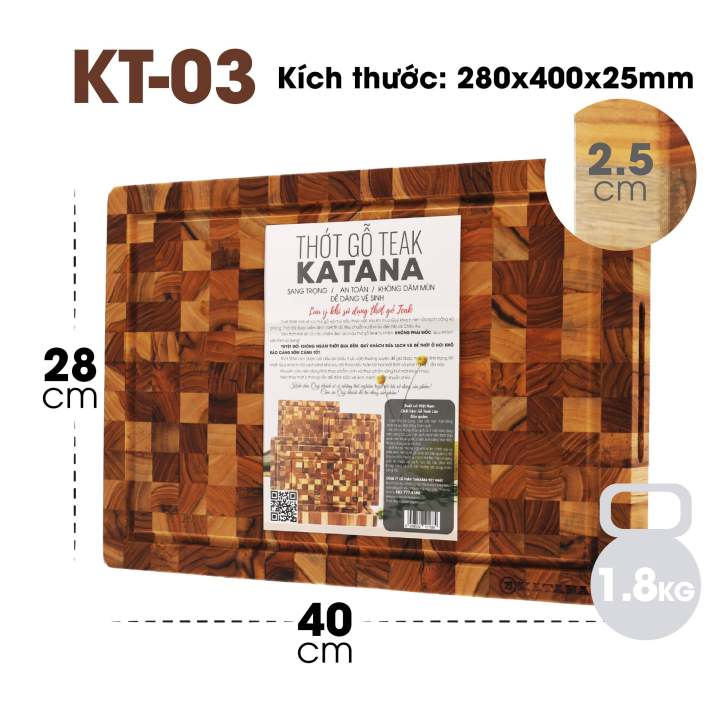 Thớt gỗ teak cao cấp KATANA cỡ lớn KT03 – chữ nhật kích thước 25x280x400mm