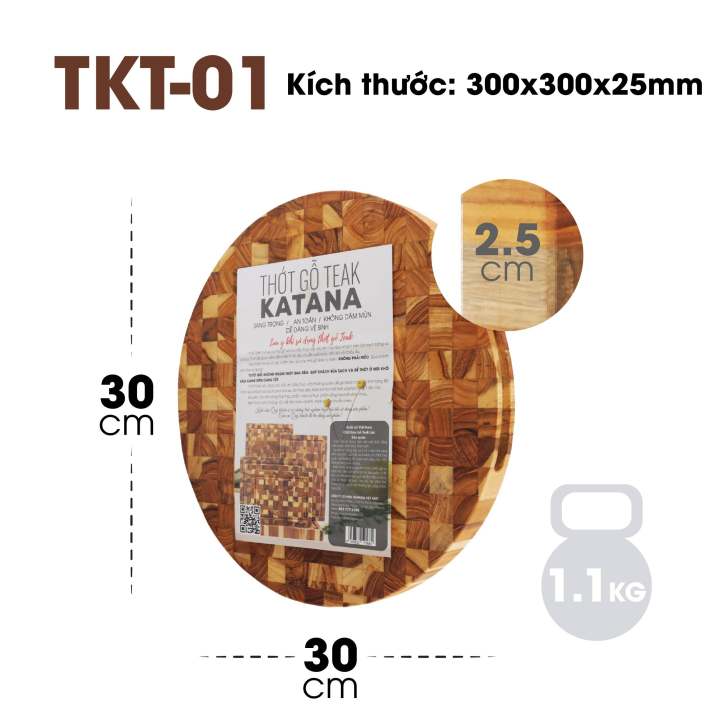 Thớt gỗ Teak KATANA hình tròn TKT01 300x300x25mm