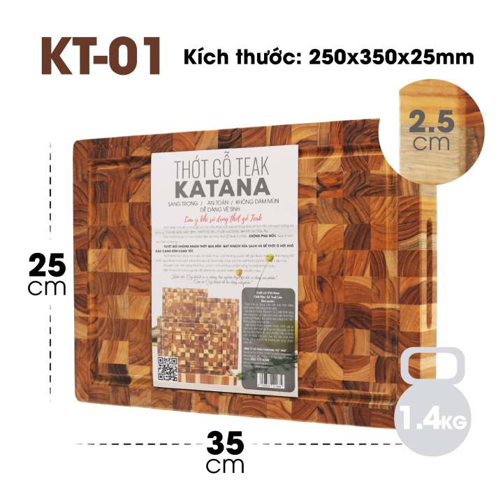 Thớt gỗ Teak KATANA siêu tiện dụng an toàn thực phẩm hình chữ nhật size vừa – KT01 250x350x25mm