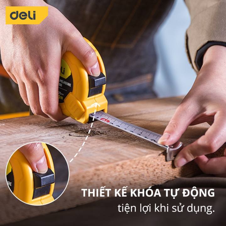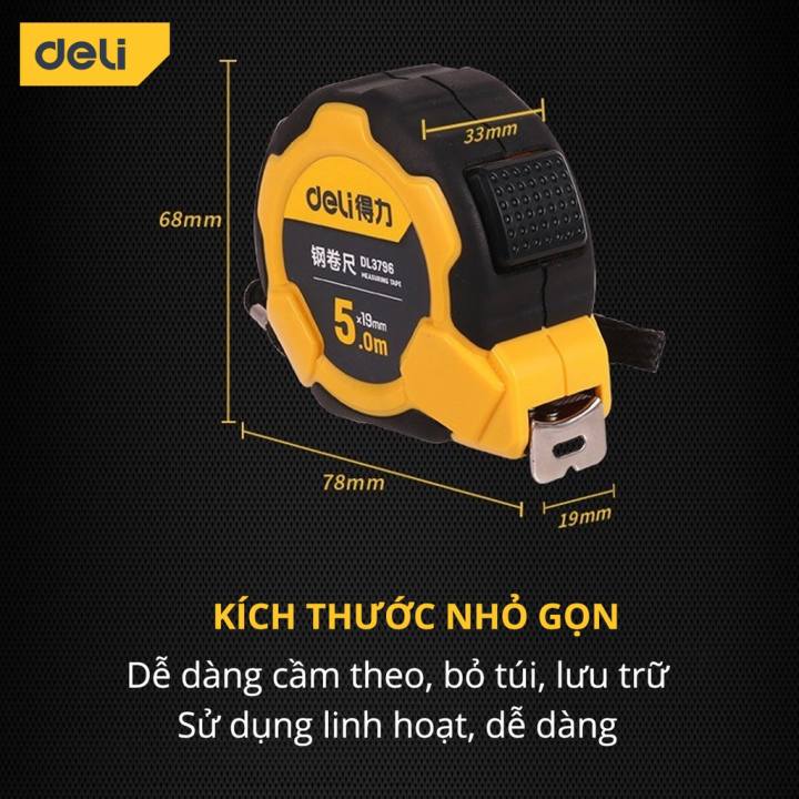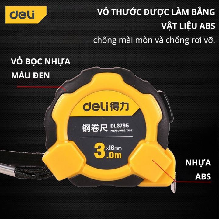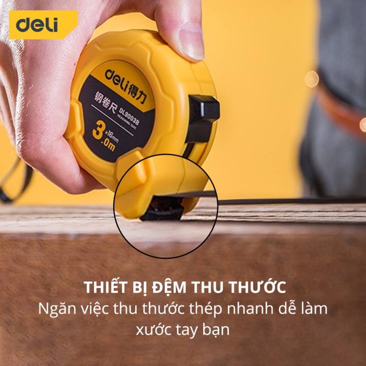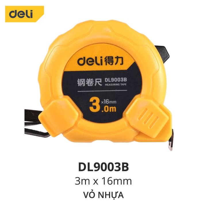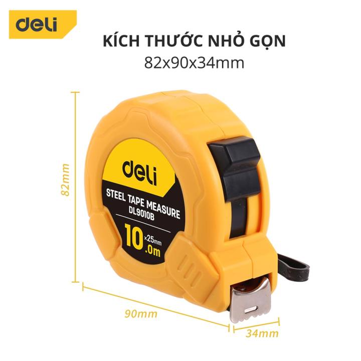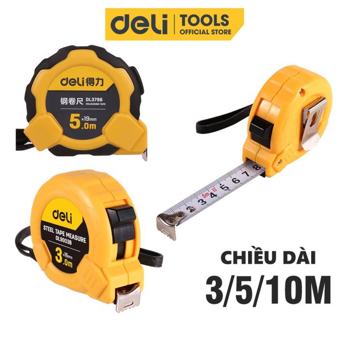 Thước Cuộn Thép Deli Cao Cấp Chính Hãng Đủ Size – Chất Liệu ABS Bọc Cao Su Chắc Chắn Chống Va Đập – DL3796 / EDL9003B